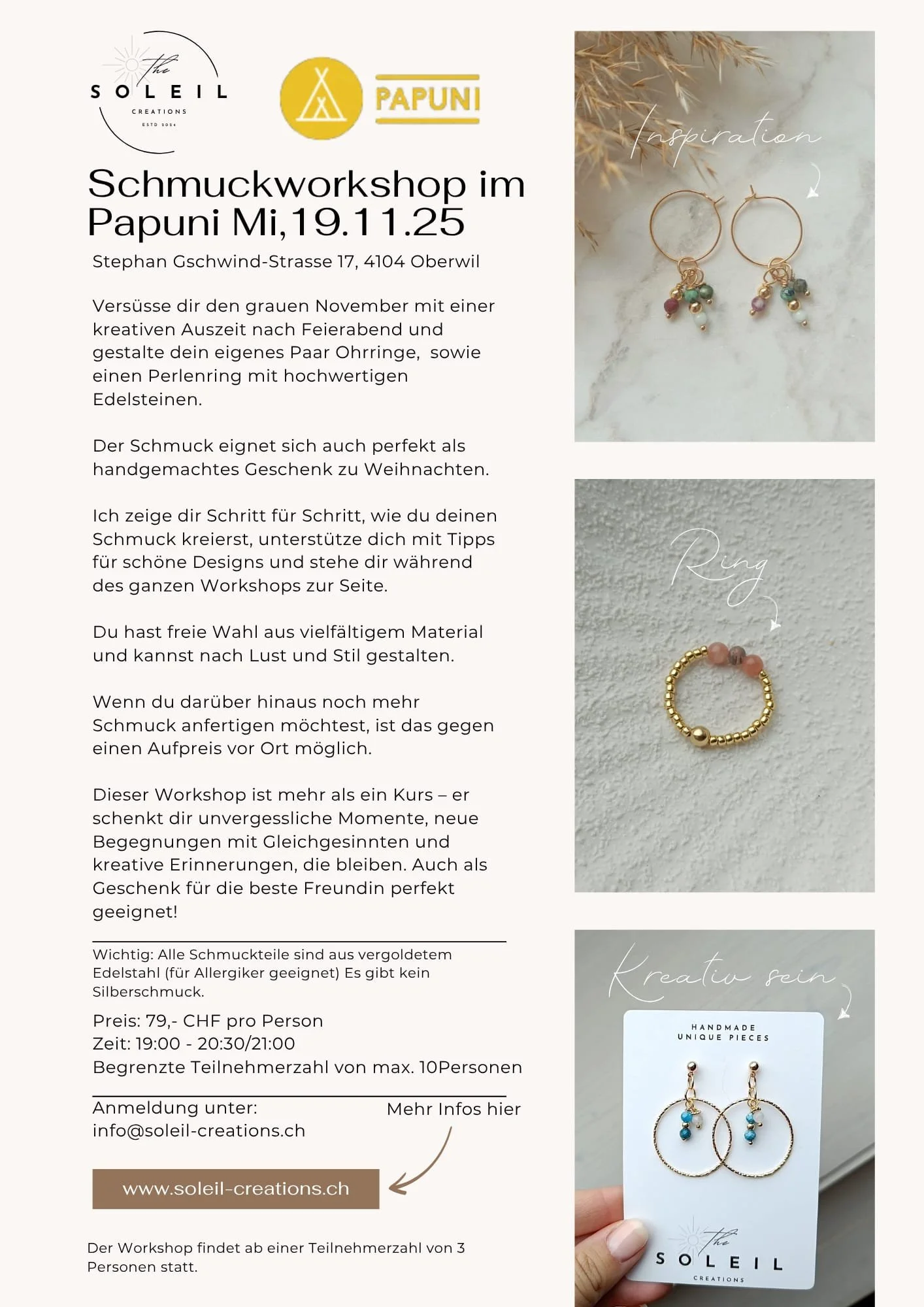 Manchmal schreiben wir einen Kurs aus- das sind die öffentlichen Workshops. MELDE DICH aber wenn Du ein anderes Datum möchtest , sei es wenn Du alleine beraten werden möchtest oder zusammen mit Freundinnen in einer geschlossenen Gruppe, also in einem Privatworkshops, den Kurs machen möchtest. Dieser wird nicht öffentlich ausgeschrieben bzw. ihr bleibt unter Euch. Bitte Anfrage an info@papuni.ch oder per whatsapp/Tel. an 0786688698 (Elli).